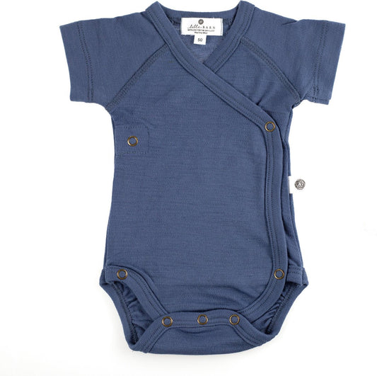 Wollen overslag romper korte mouw -merino wol- vintage indigo